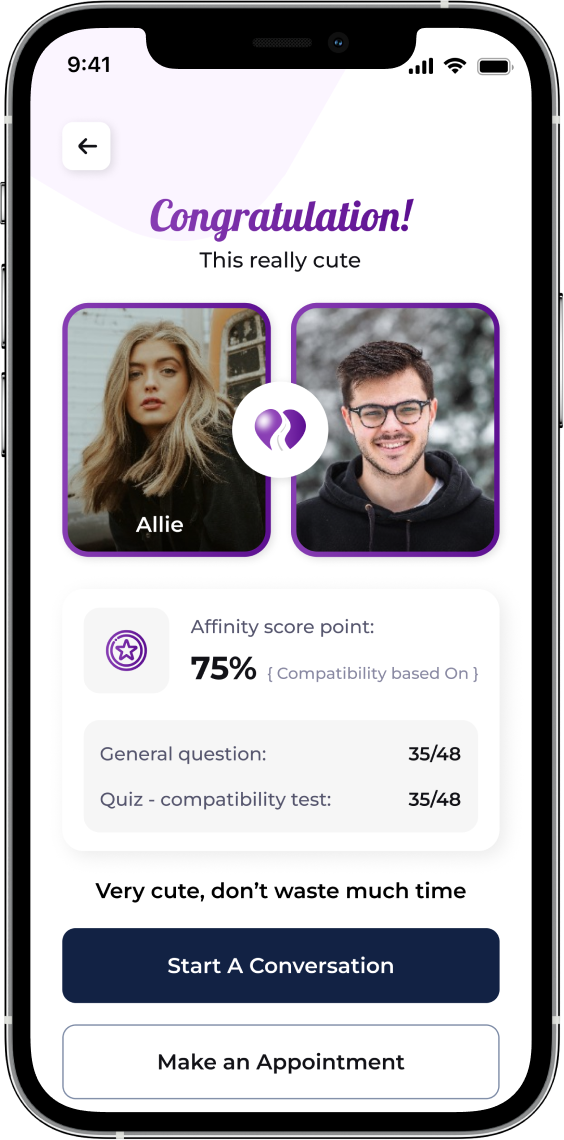 AppatMe uses artificial intelligence « IA » to offer in-depth compatibility tests. Through multidimensional profiling algorithms, AppatMe highlights unique compatibility criteria across emotional, intellectual, lifestyle, and values dimensions, enabling users to connect with people who meet their expectations and aspirations.